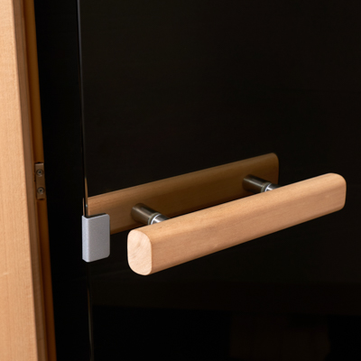 Дополнительно мы разработали для деревянных и стеклянных дверей в сауну или баню анти-заклинивающую систему, которая позволяет при перекосах дверного проема или полотна избежать заклинивания двери.