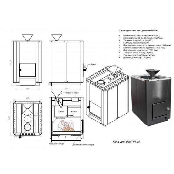 | Диаметр дымохода | 120 мм |