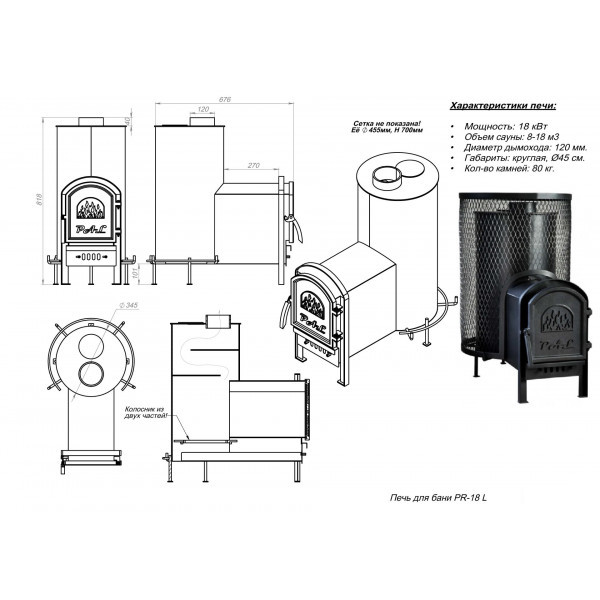 | Диаметр дымохода | 150 мм | |